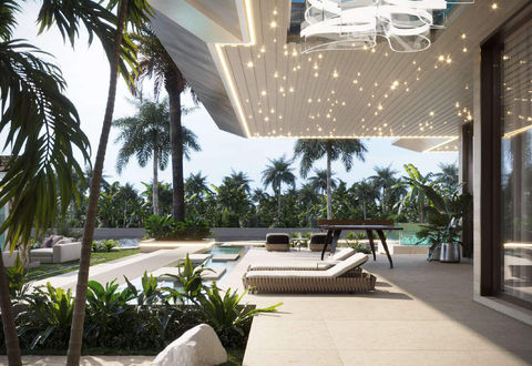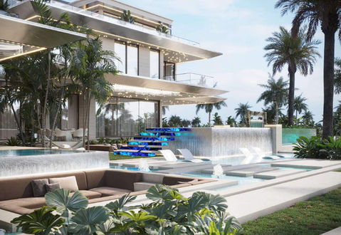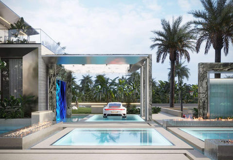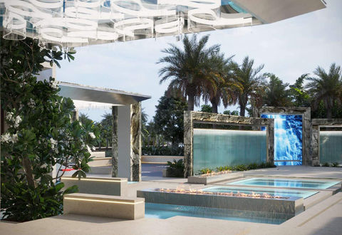 STAMP Las Olas commands attention with over 400 feet of prime waterfrontage along Fort Lauderdale’s prestigious New River, set on a full acre in the heart of the Las Olas district. This architectural masterpiece stands as a modern Italian-inspired landmark, surrounded by lush botanical gardens, tranquil water features, and serpentine walkways. A striking 95-foot resort-style pool and spa, private cabana with full kitchen, and dedicated basketball/pickleball court and putting green ensure the outdoor experience rivals any five-star resort. By night, curated landscape lighting and the glow of fountains transform the grounds into a breathtaking, private sanctuary.